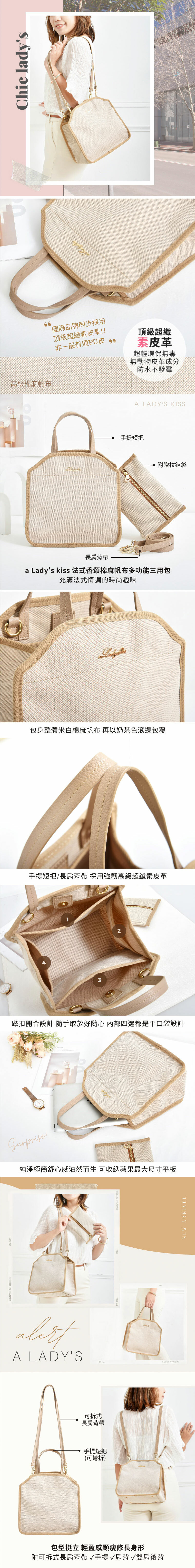 夏季主打限時搶1688【a Lady's kiss】法式香頌棉麻帆布多功能三用包