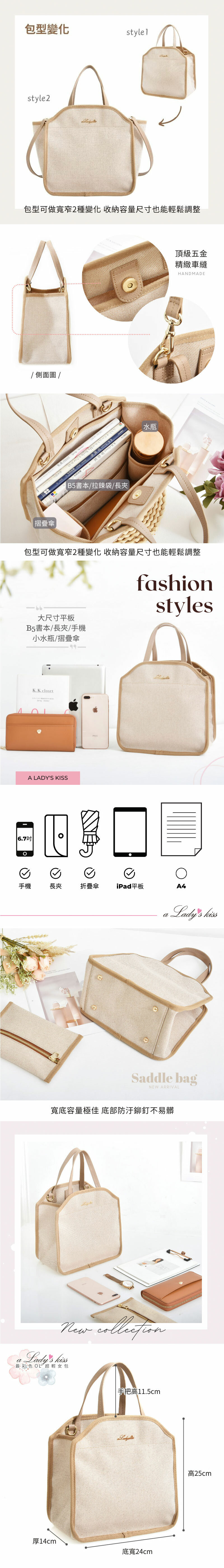 尺寸:底寬24、高25、厚14、短手把高11.5、可拆式長肩背帶36.5 (誤差值±1公分)