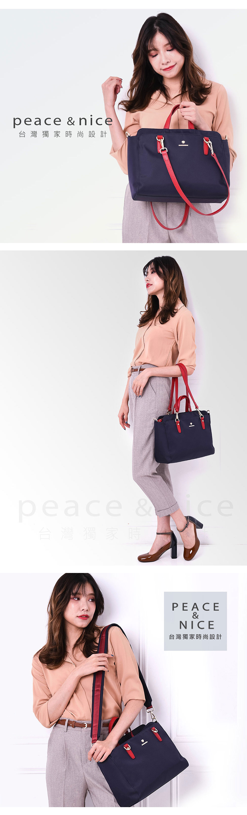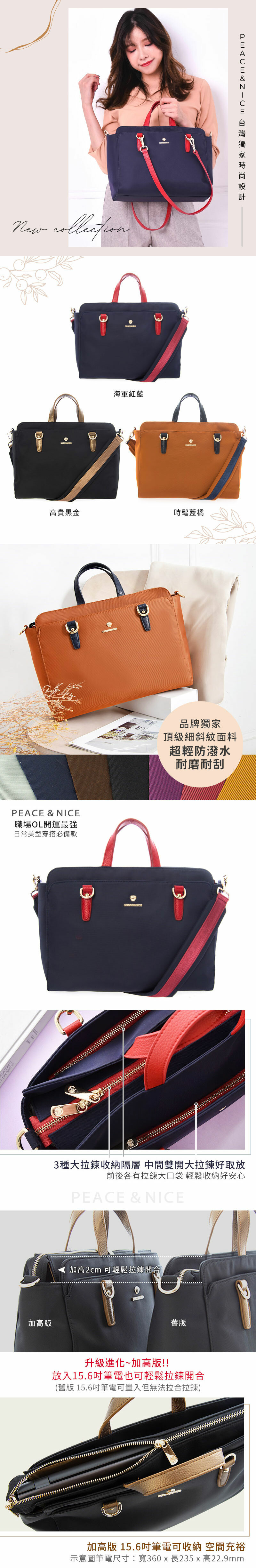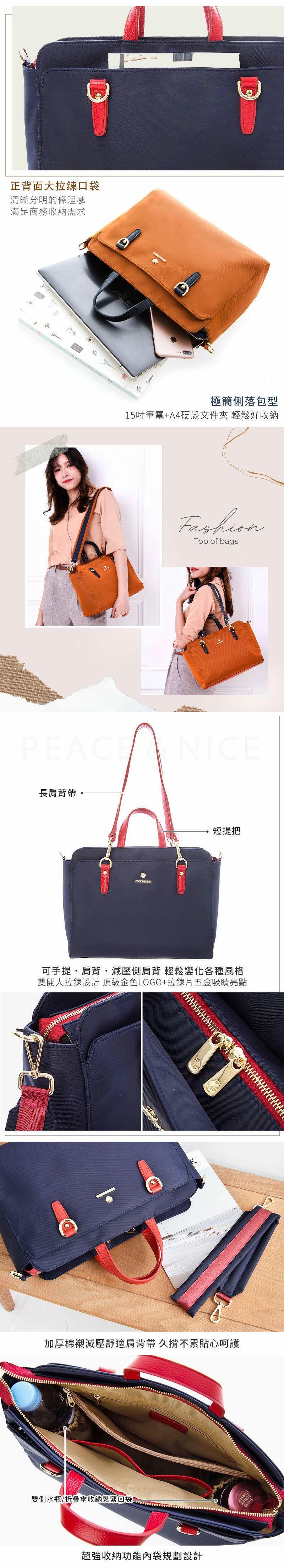 雙11搶購款即將絕版【PEACE&NICE】加高版白領OL商務多層筆電三用包(海軍紅藍)
