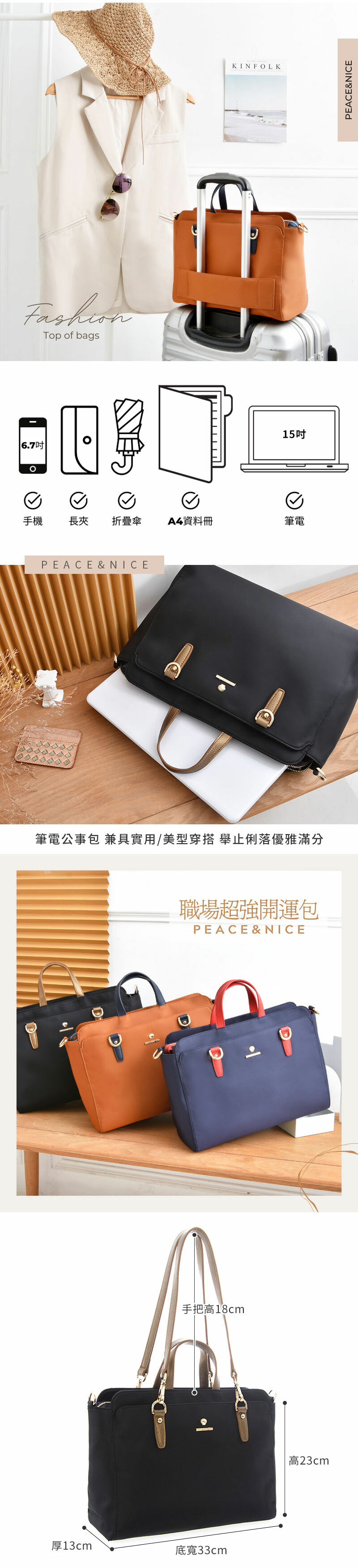 本款~加高版白領OL商務多層筆電三用包