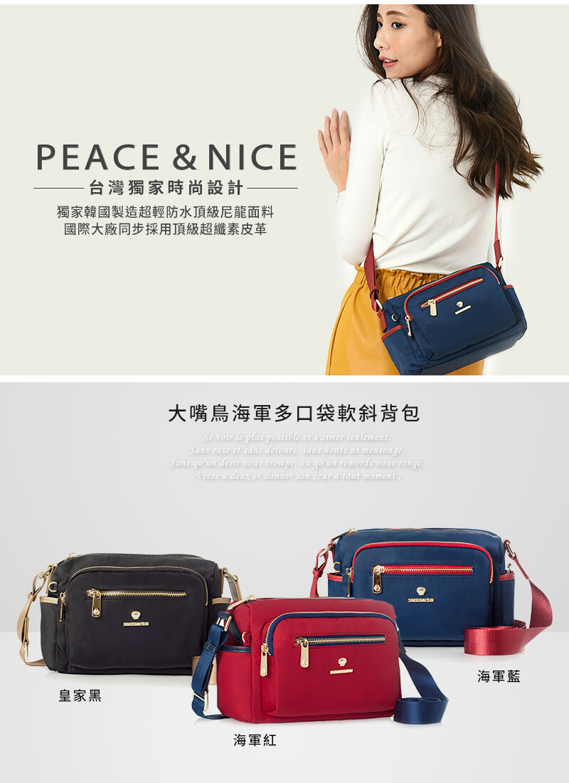 雙11搶購款即將絕版【PEACE&NICE】大嘴鳥海軍多口袋軟斜背包(3色)